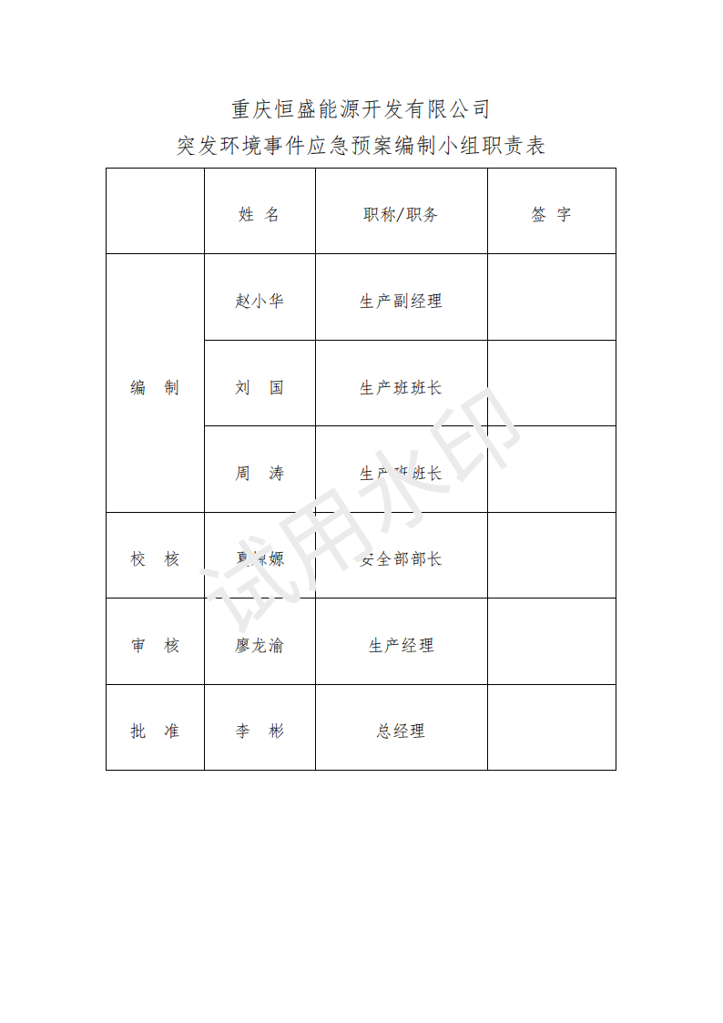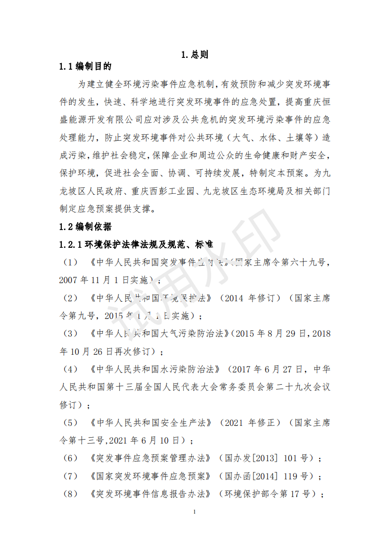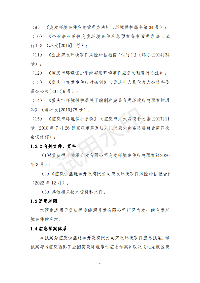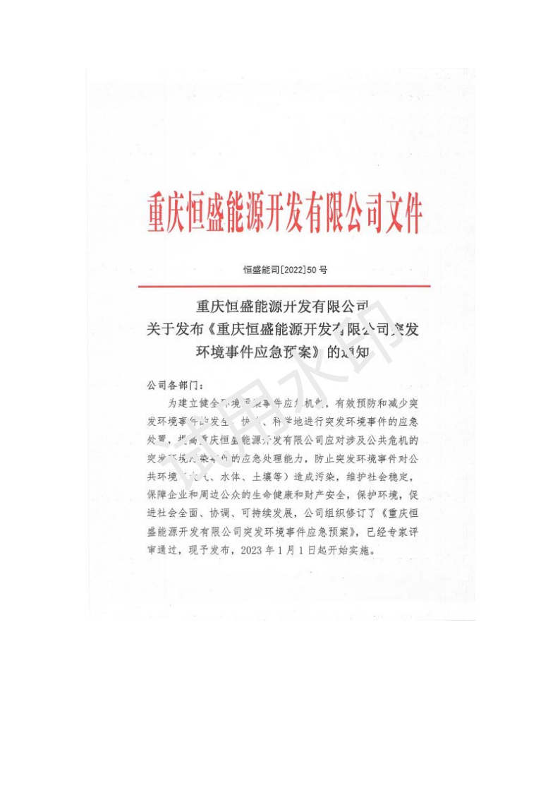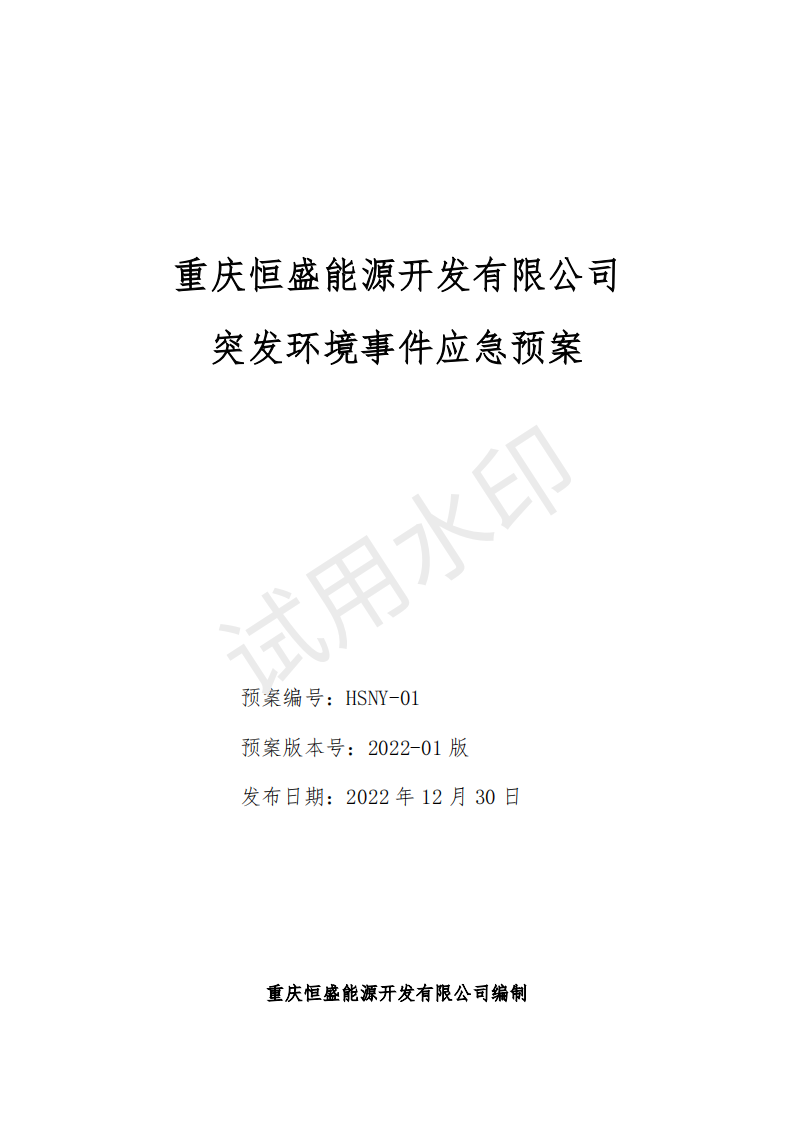 重慶恒盛能源開(kāi)發(fā)有限公司突發(fā)環(huán)境事件應(yīng)急預(yù)案
